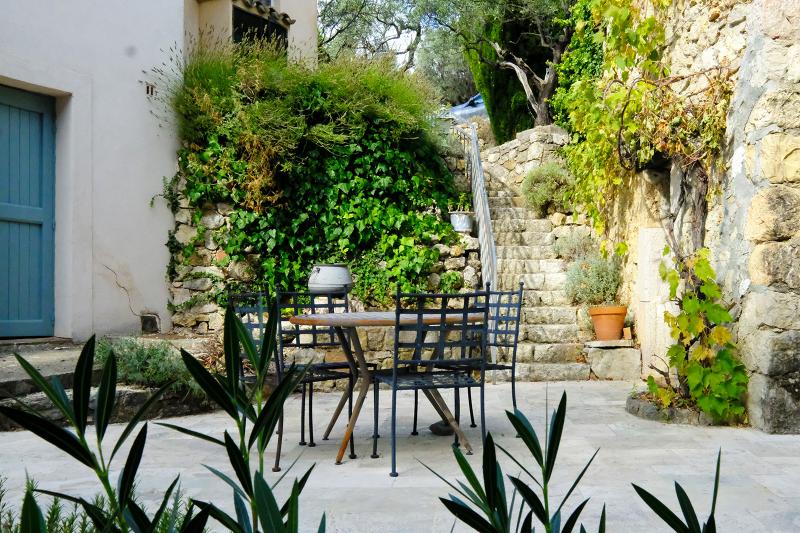 De villa is gelegen op slechts 2,5 kilometer van het centrum van het dorp. Het terrein is ruim 1 hectare groot. In de prachtig aangelegde tuin groeien op verschillende niveaus olijfbomen, cypressen, lavendel en rozemarijn. Vanaf het terras en het zwembad geniet u van een panoramisch uitzicht over de heuvels en bergen. Het zwembad ligt op een apart terras, omringd door olijfbomen, oleanders en druivenranken. De Bergerie bevindt zich op korte afstand van de woning en ademt de authentieke Provençaalse sfeer.