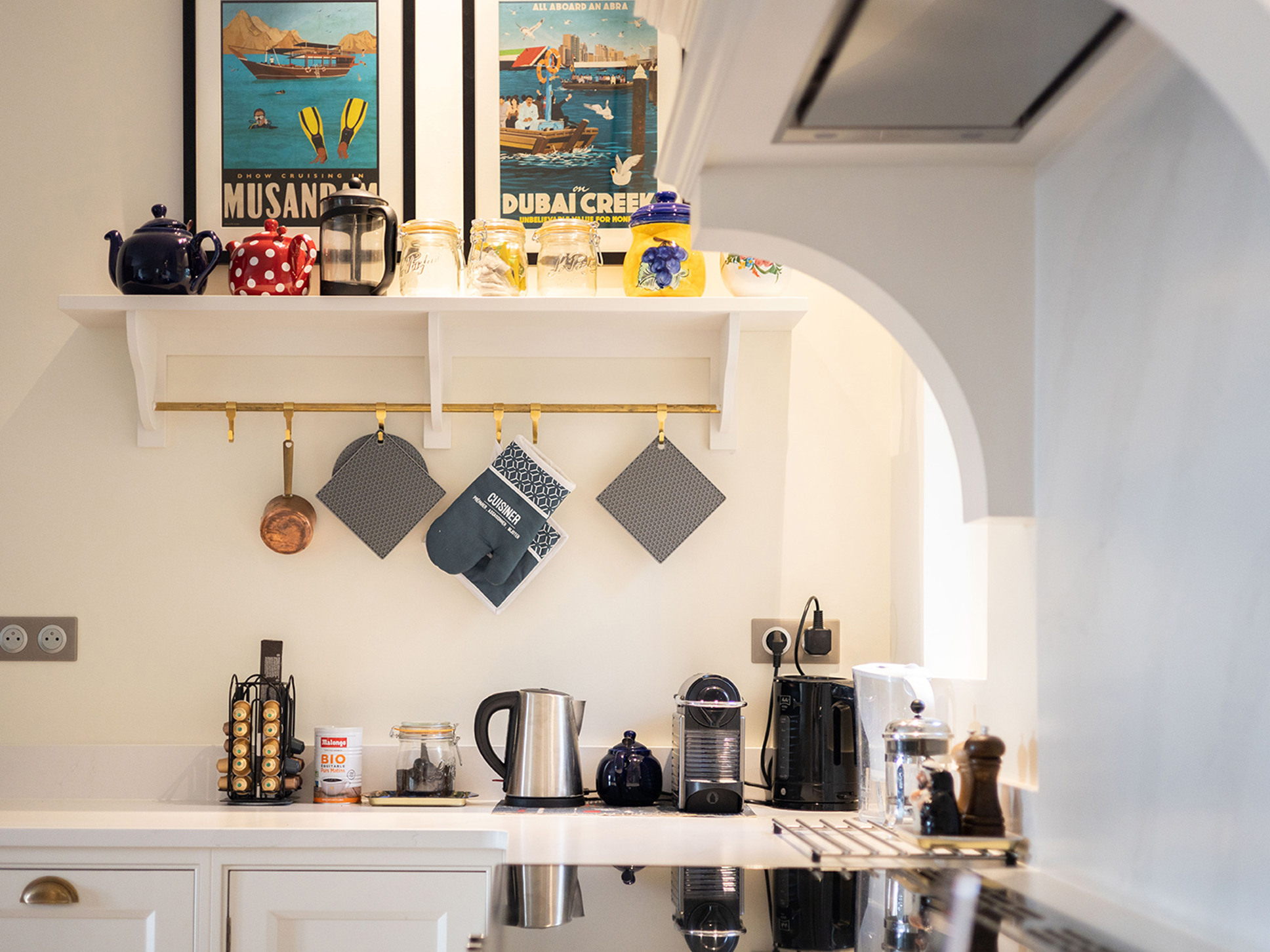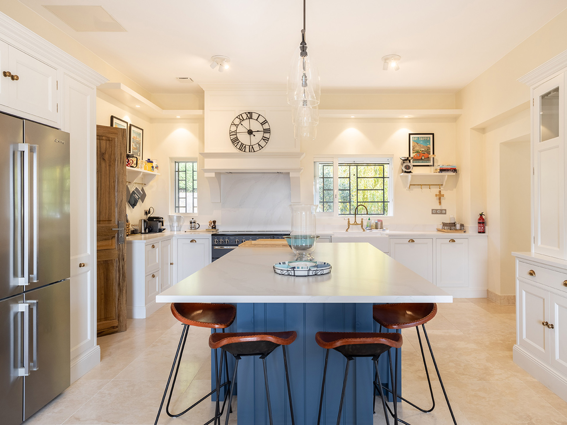 De keuken is modern ingericht en voorzien van een Amerikaanse koelkast / vriezer, vaatwasser, 5-pits gaskookplaat, magnetron, oven en filterkoffiezetapparaat. Vanuit deze open keuken heeft u direct toegang tot het overdekte terras het zithoek en eettafel.