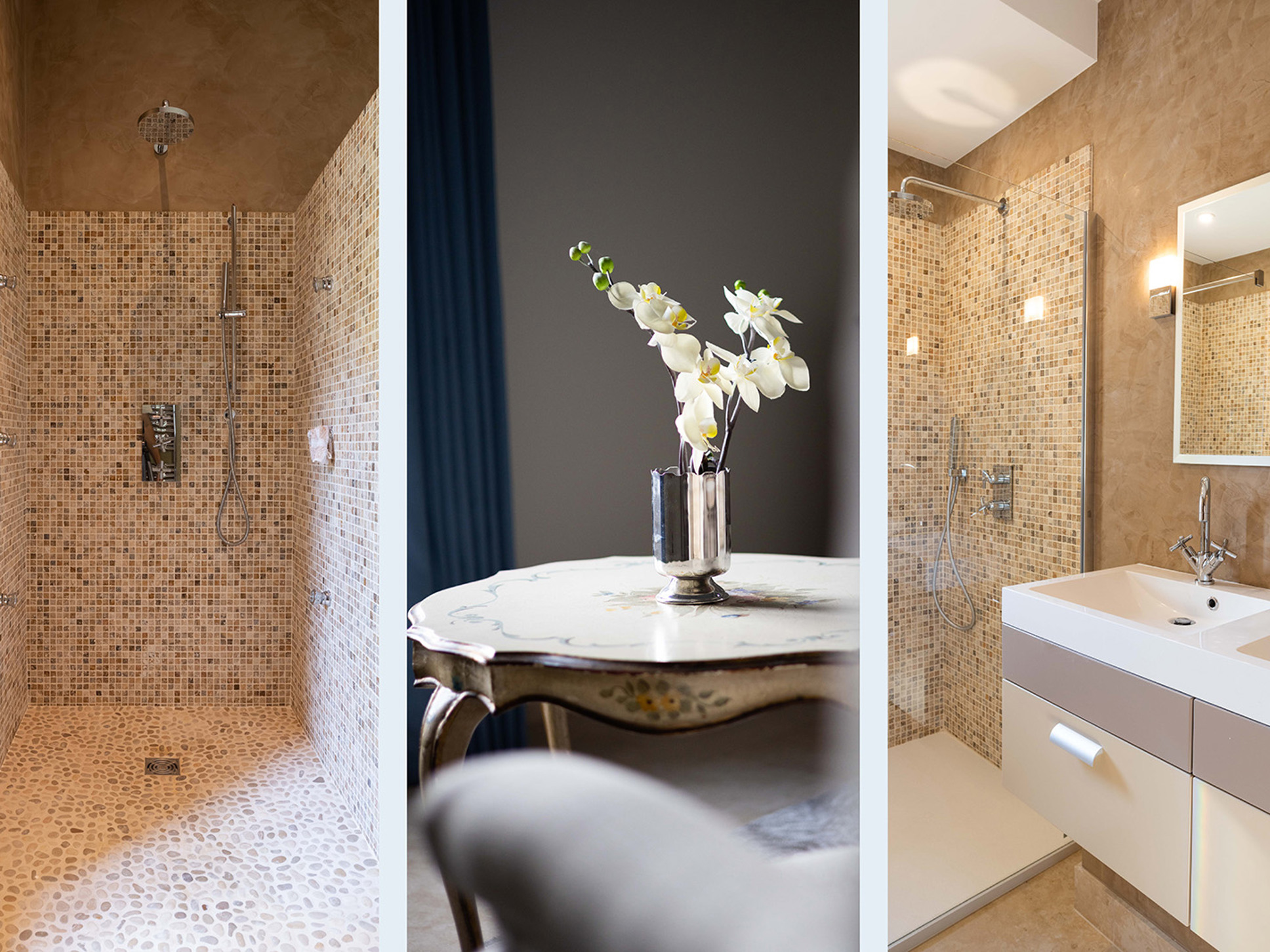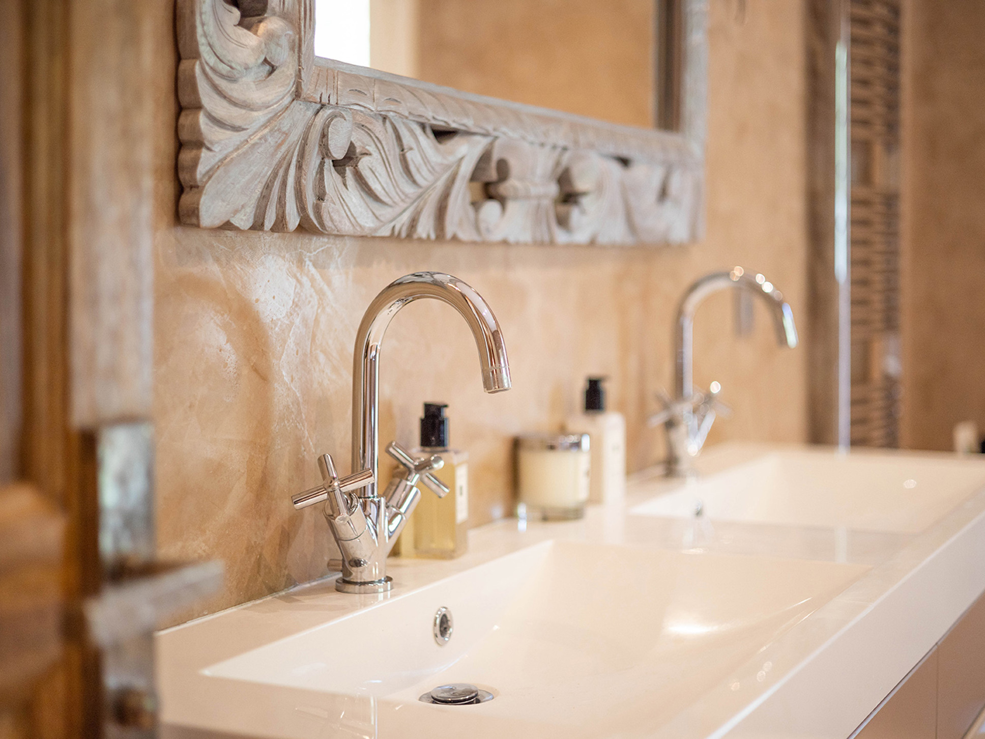 Bijzonder om te vermelden is dat alle bedden heerlijk royaal zijn plus voorzien van prachtig bedlinnen. Slaapkamer 1, is royaal met haar 40 m2 haar (195 x 220) tweepersoonsbed. De luxe en-suite badkamer biedt een ligbad, douche, wastafel. Deze luxe airconditioned slaapkamer is tevens voorzien van een eigen dressing en een separate W.C.