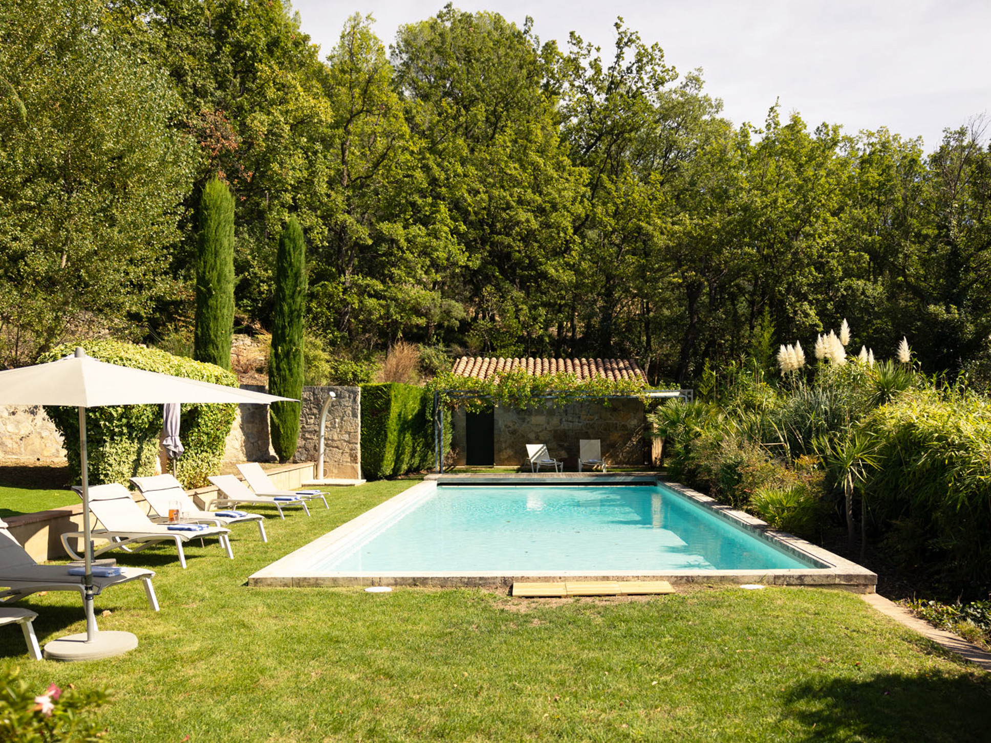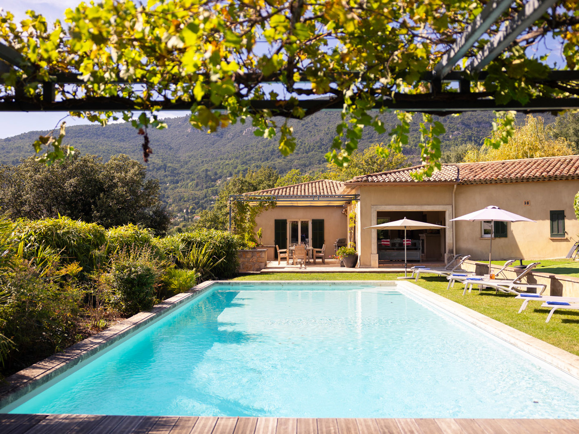 Zeer luxe villa met royaal privézwembad, poolhouse in Seillans, Provence. Dankzij de zeer ruime tuin (met grasveld) en dito zwembad erg aantrekkelijk voor gezinnen met kinderen. Smaakvol ingericht in Engels country chic. De villa is geschikt voor 6 volwassenen + 2 kinderen.