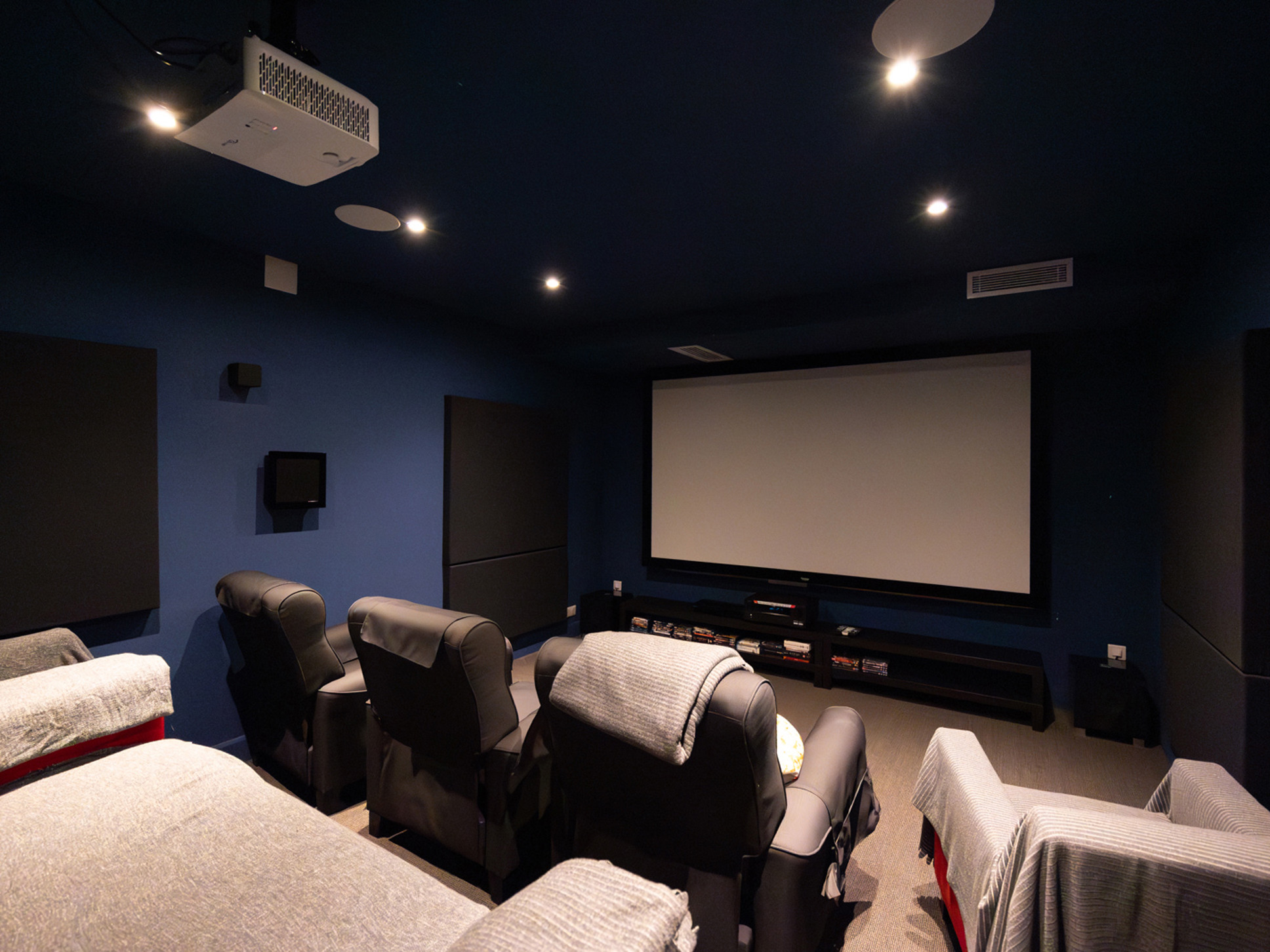 Is er ook TV? Jazeker, en wel een heuse thuis bioscoop. Sound proof en voorzien van een prachtige video/audio installatie en comfy zitmeubelen. Ouders wordt gevraagd om kinderen enkel onder supervisie de installatie te laten bedienen.