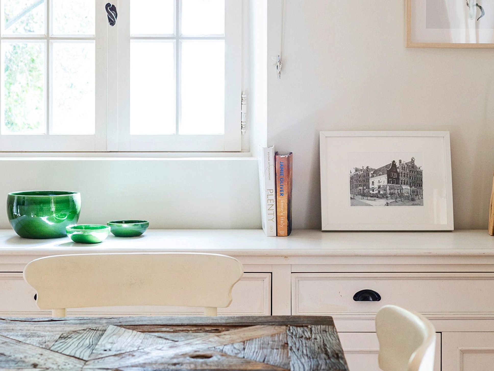 De woonkeuken is voorzien van alle gemakken en benodigde keukenmachines, o.a. een grote koelkast, oven, magnetron, waterkoker, vaatwasser en inductie kookplaat. De eettafel in de keuken biedt plaats voor 4 personen. Vanuit de keuken heeft u direct toegang tot het terras.