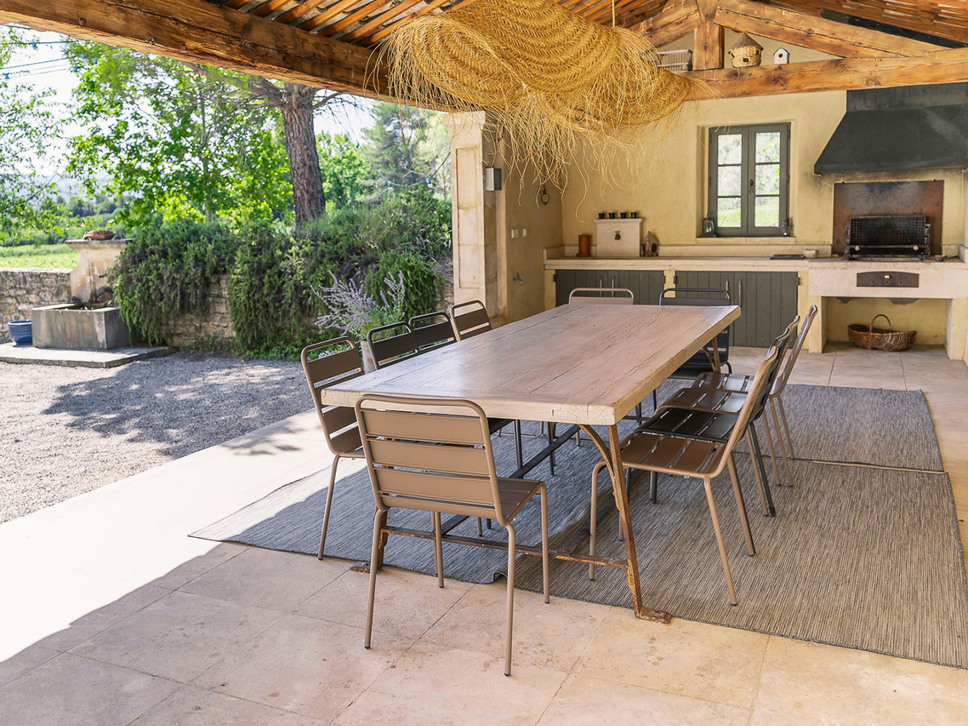 Een pergola van 70m2 biedt u de gewenste schaduw. Verder is de pool area voorzien van een grote tuinset, een teakhouten eettafel van 3m en een gasbarbecue. U heeft ook een zomerkeuken met koelkast, keramische kookplaat en vaatwasser tot uw beschikking.