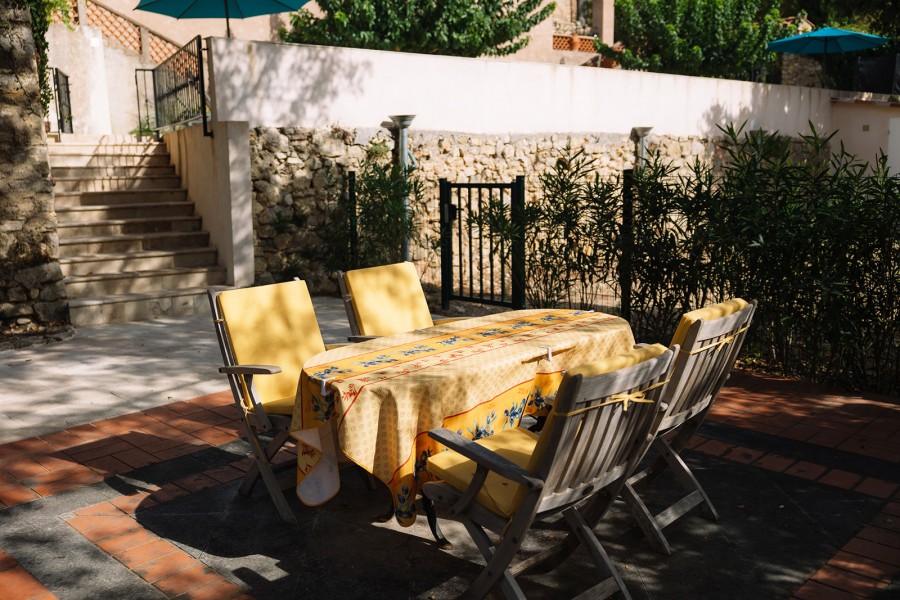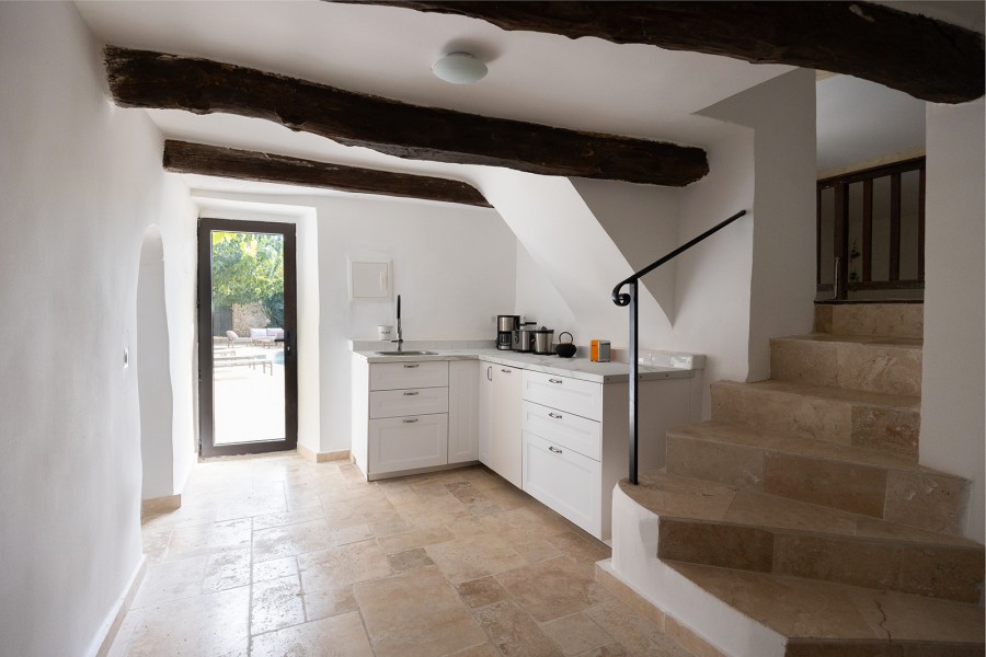 In het hoofdhuis bevindt zich de living welke sfeervol en kleurrijk ingericht, er zijn comfortabele zitmeubelen. Hoge plafonds en ramen zorgen voor veel lichtinval. U kijkt uit op de groene Provençaalse heuvels. Rust en privacy kenmerken uw verblijf. "Franser" kunnen we het ons bijna niet voorstellen.