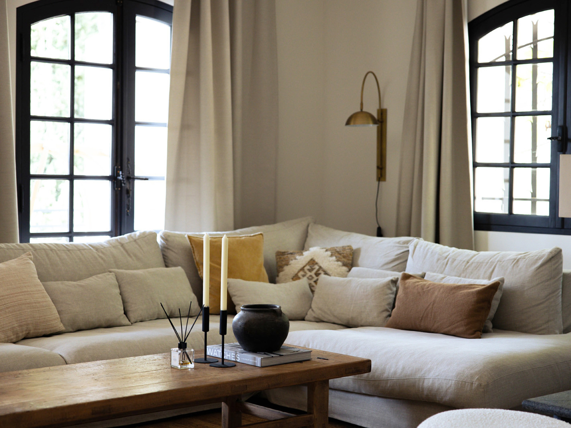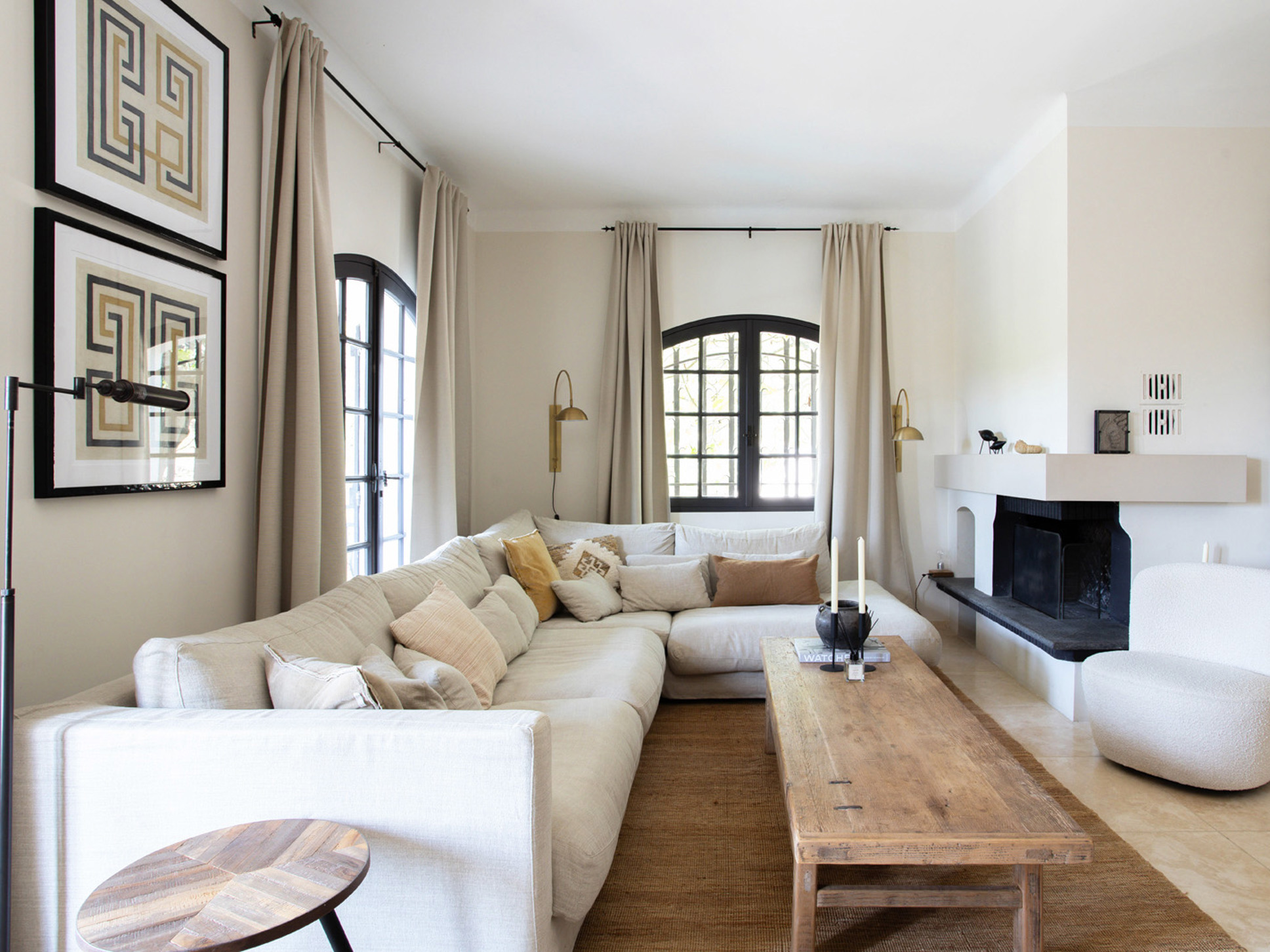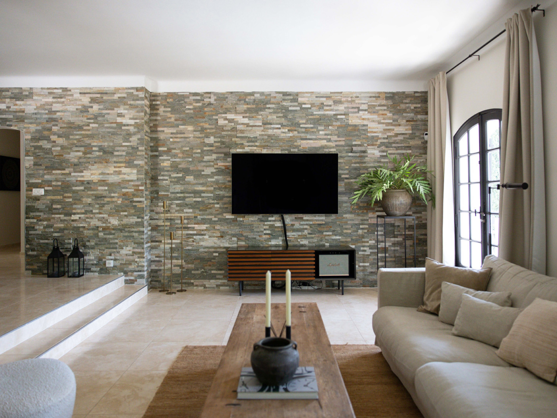 Zodra u via de voordeur binnenkomt, wordt u verwelkomd in de sfeervolle living van de villa. De woning is speels ingedeeld over twee verdiepingen. U parkeert uw auto op het niveau van de entree, waar zich ook de living, de keuken en vier van de zes slaapkamers bevinden. Wanneer u vanaf het zwembad naar de villa kijkt, betreft dit de bovenverdieping.