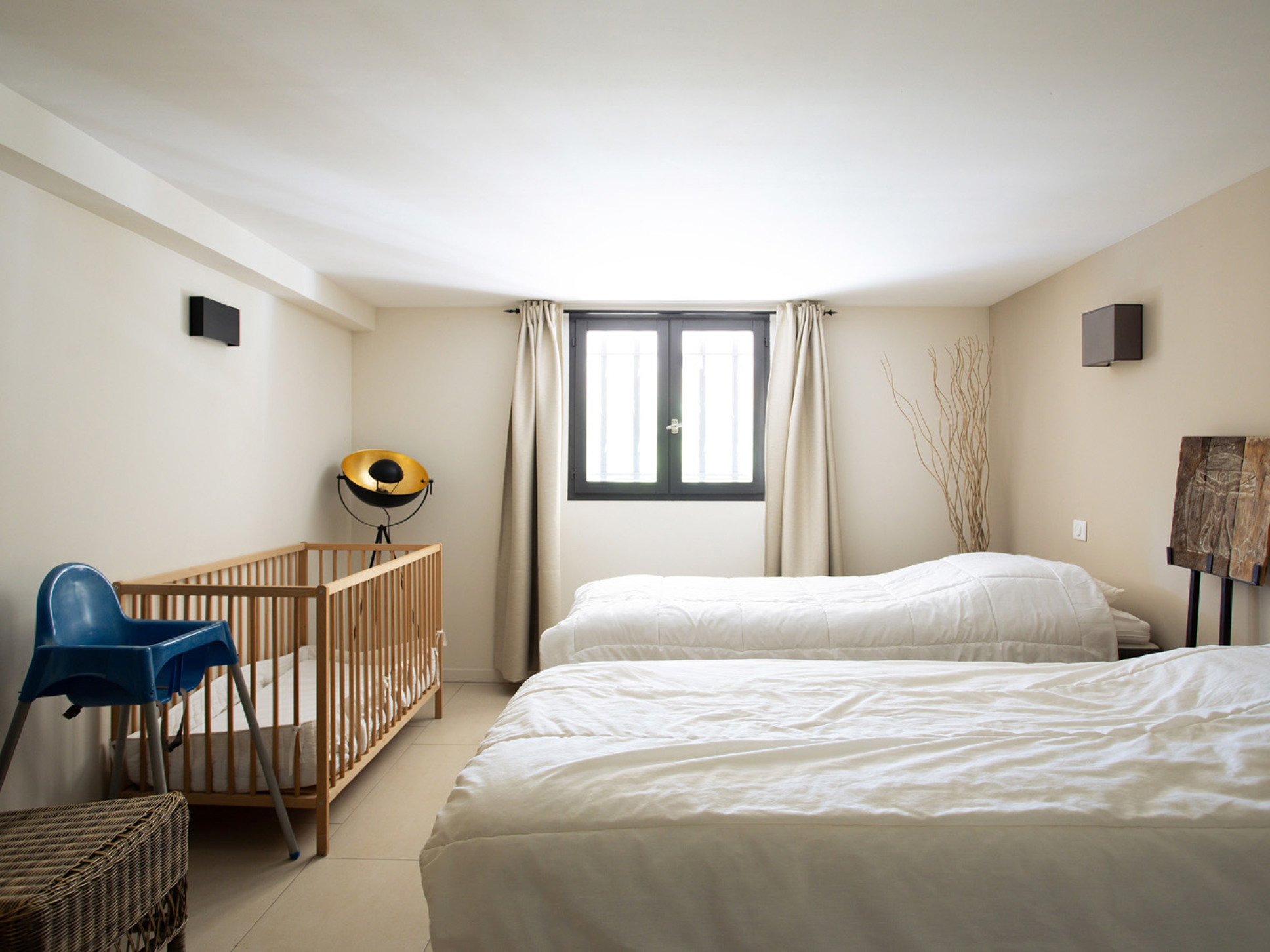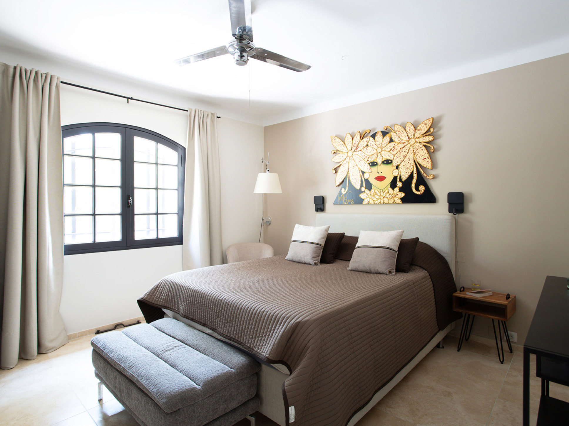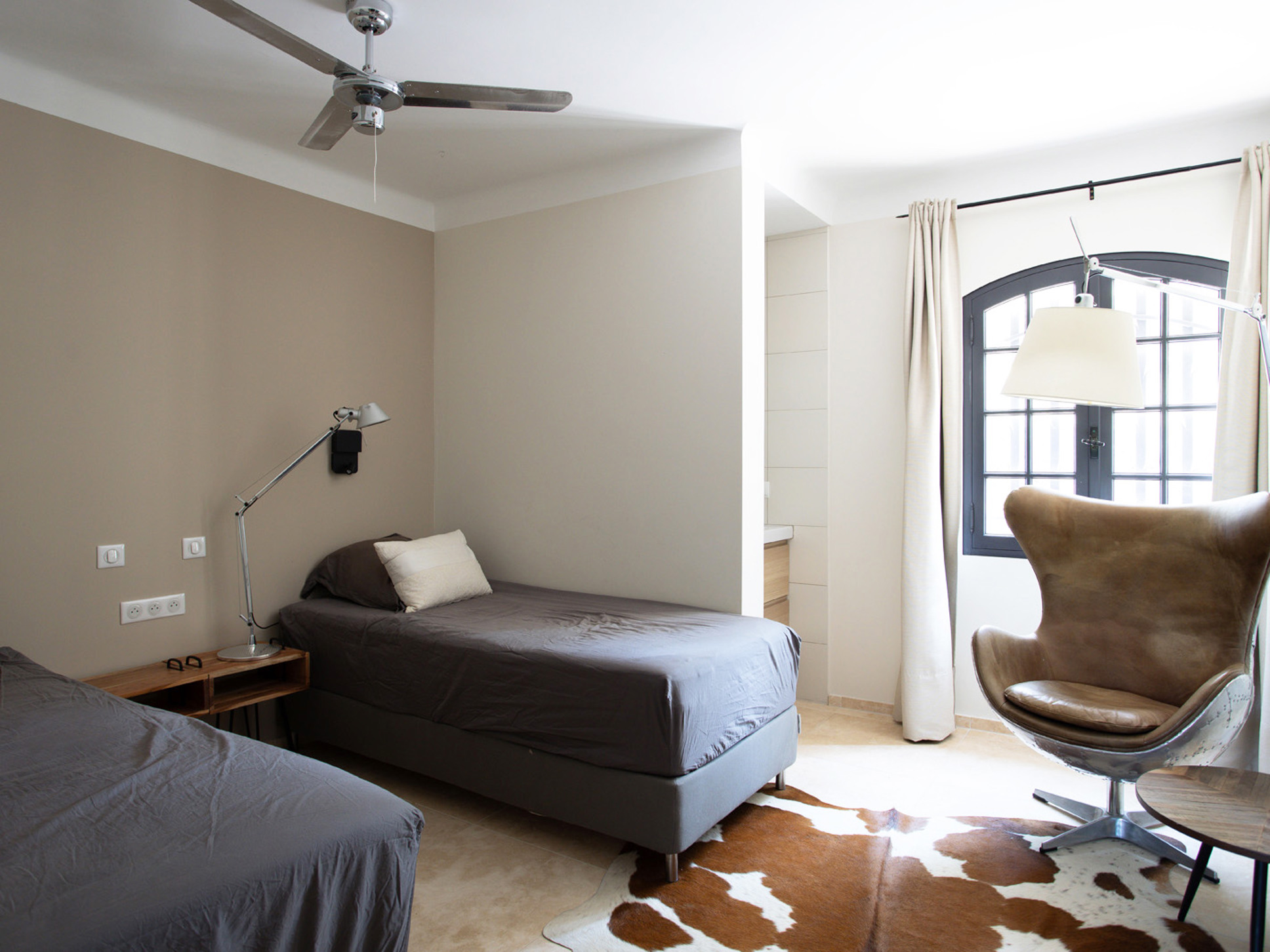 De villa beschikt in totaal over zes slaapkamers en twee badkamers. Op het niveau van de living bevinden zich vier slaapkamers, alle voorzien van airconditioning: