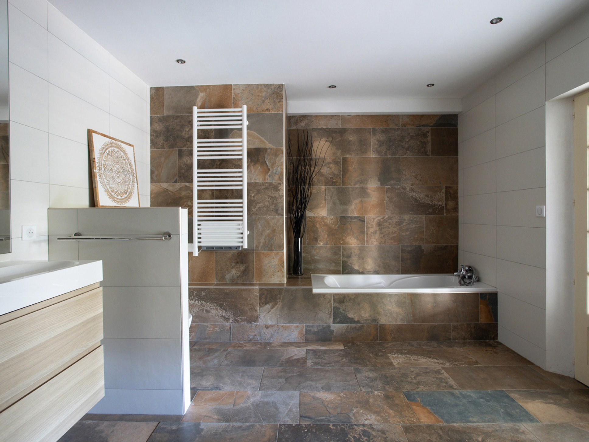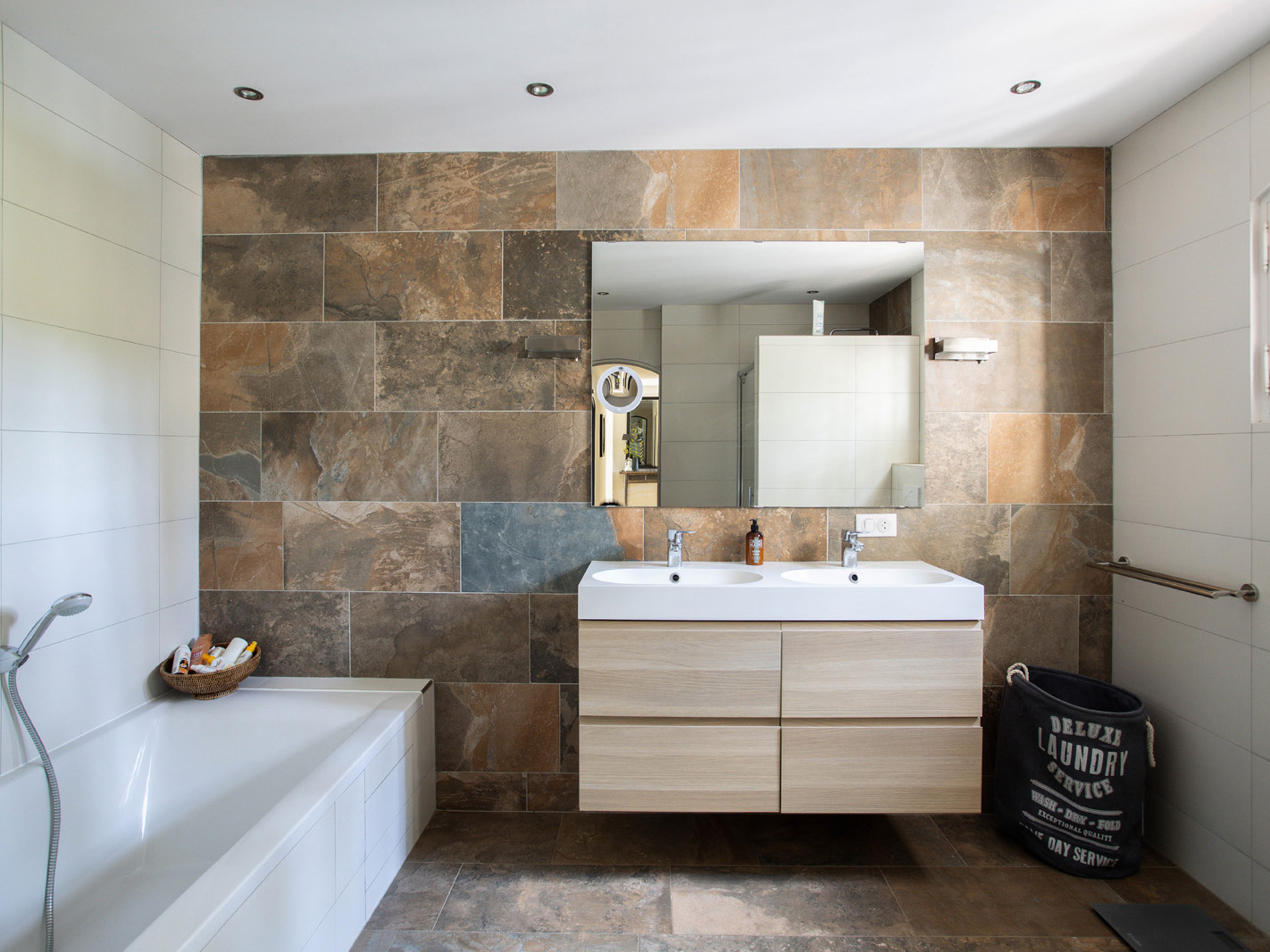 Slaapkamer 6 is een tweede kinderslaapkamer met twee eenpersoons boxspringbedden (2x90x200). De badkamer op deze verdieping is royaal en luxe uitgevoerd met een ligbad, inloopdouche, wastafel en toilet. Deze badkamer beschikt bovendien over openslaande deuren naar het aangrenzende terras.