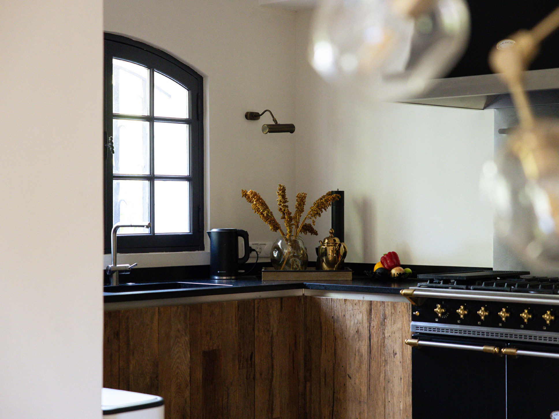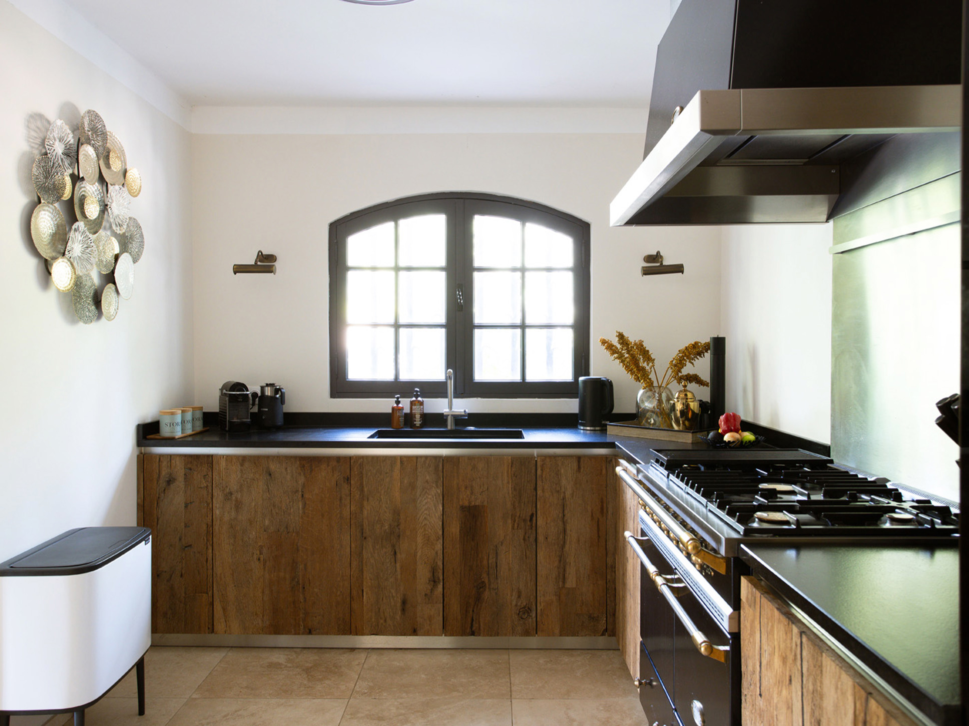 De moderne open keuken is een waar paradijs voor liefhebbers van bourgondisch koken. De keuken is bijzonder compleet uitgerust met onder andere een ‘Lacanche’ fornuis met elektrische én gasoven, een plancha, combimagnetron, twee koelkasten, een wijnklimaatkast, een vaatwasser, een Nespresso-apparaat met melkopschuimer, en handige accessoires zoals een vleesthermometer, diverse blenders en een hakmolen.