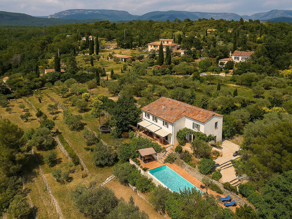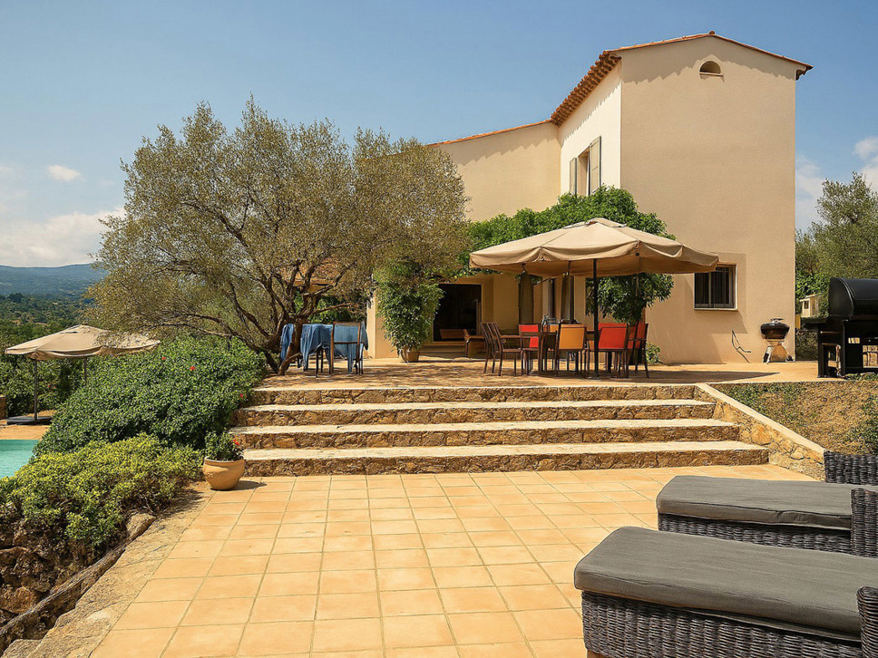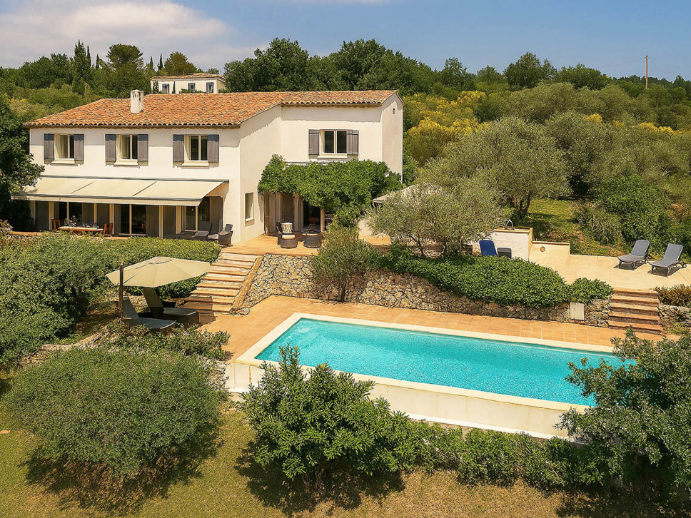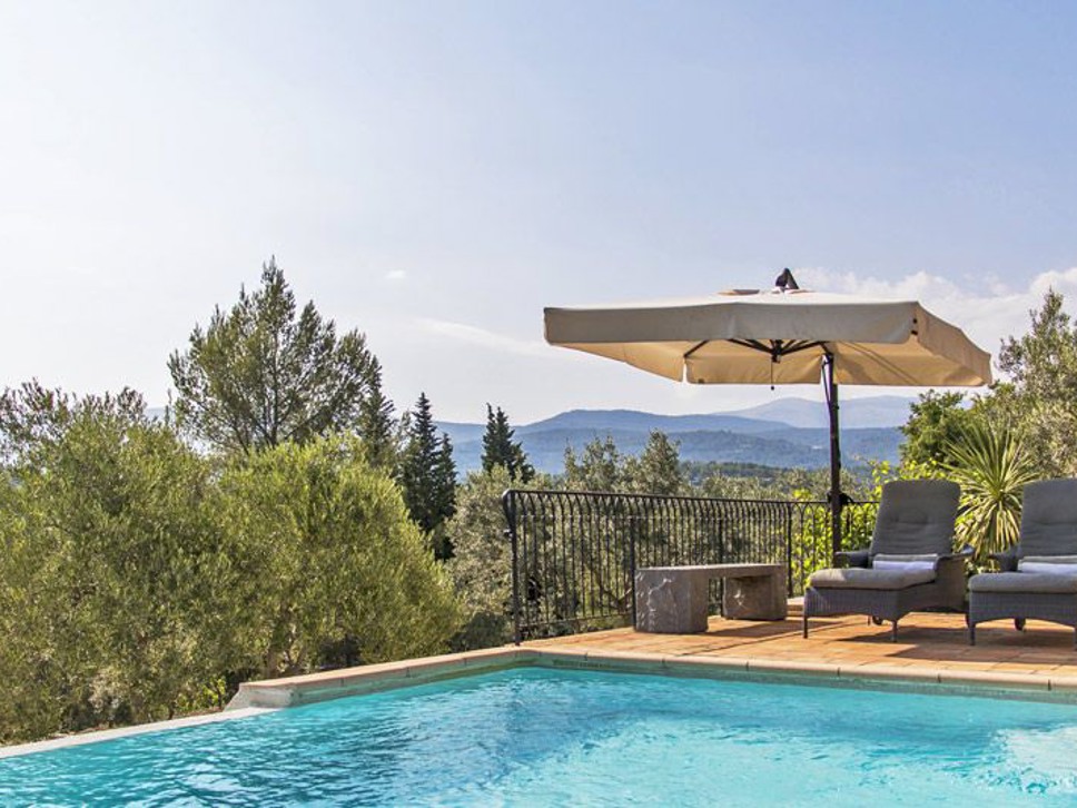 Luxe vrijstaande villa met privézwembad in Tourrettes, Provence. 100% airconditioning. Panoramisch uitzicht over de Provençaalse heuvels. De villa is geschikt voor 6 volwassenen en 2 kinderen.