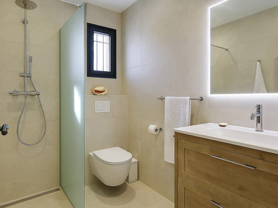 De villa heeft 4 slaapkamers en 3 badkamers. Allemaal gelegen op de eerste verdieping. Slaapkamer 1, de ouder slaapkamer biedt een tweepersoonsbed (180x200), een en-suite badkamer (douche, bad en dubbele wastafel) en een separate W.C.
