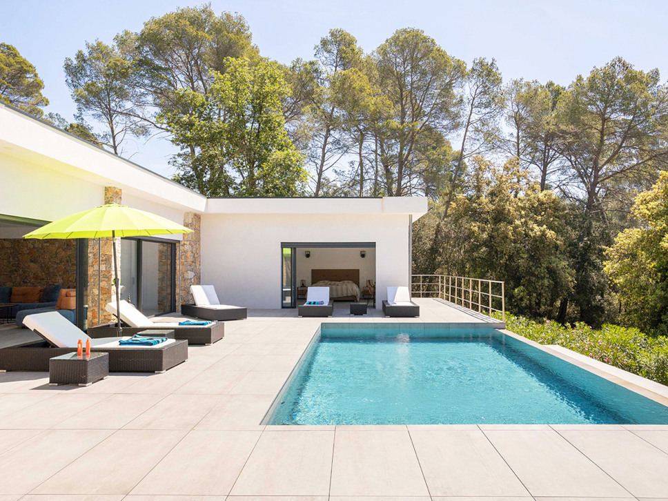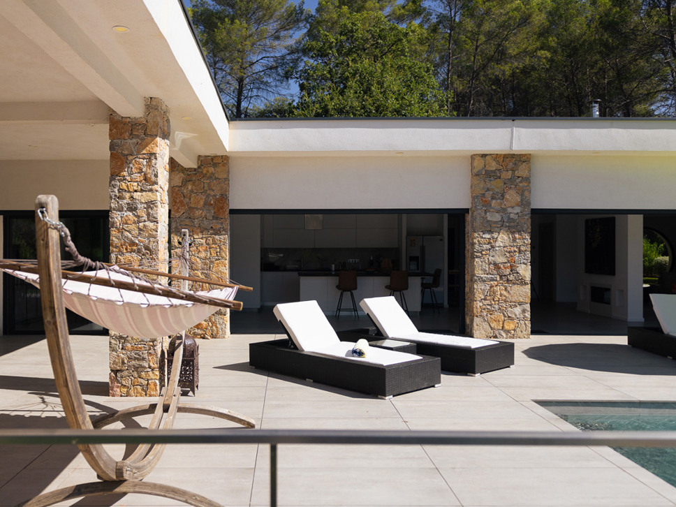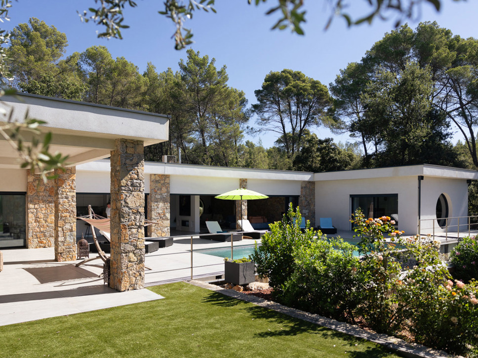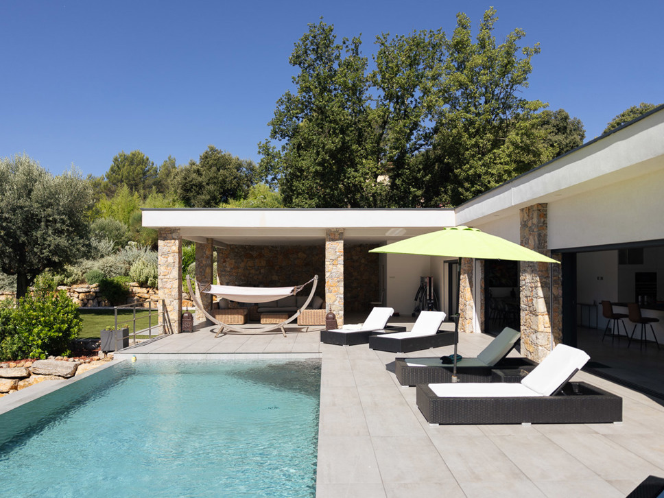 Prachtige moderne villa met privé zwembad te Trans en Provence, Provence. Geheel voorzien van airconditioning. Rust, privacy en luxe kenmerken deze villa. Geschikt voor 8 volwassenen en 3 kinderen.