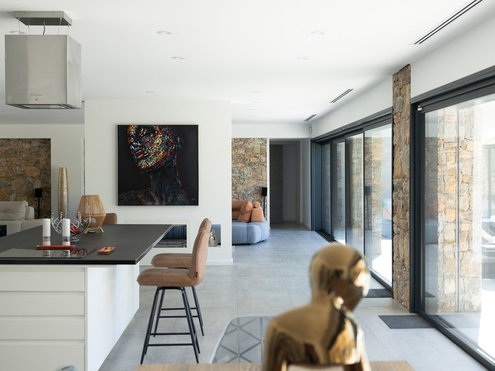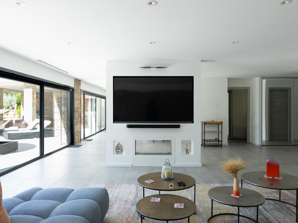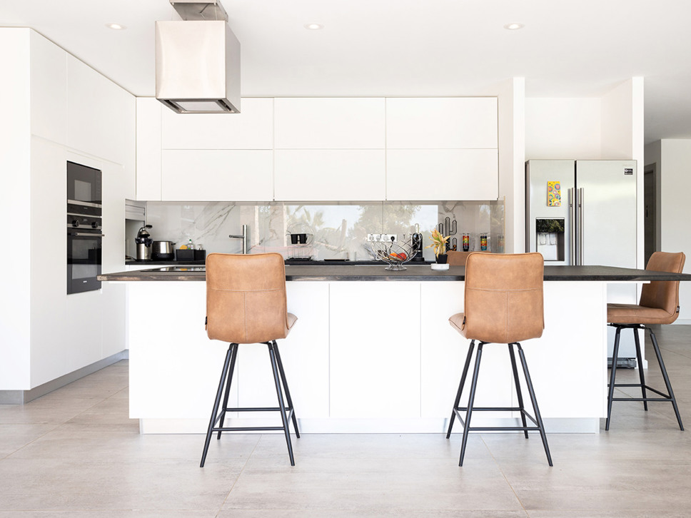 Deze moderne gelijkvloerse villa heeft lekker veel leefruimte (250 m2). Mooie en-suite badkamers, 100% airconditioning en voorzien van mooie design meubels. De living is licht, ruim van opzet en fraai ingericht met moderne luxe meubels, zithoek en eettafel. Een XL-TV ontbreekt niet.