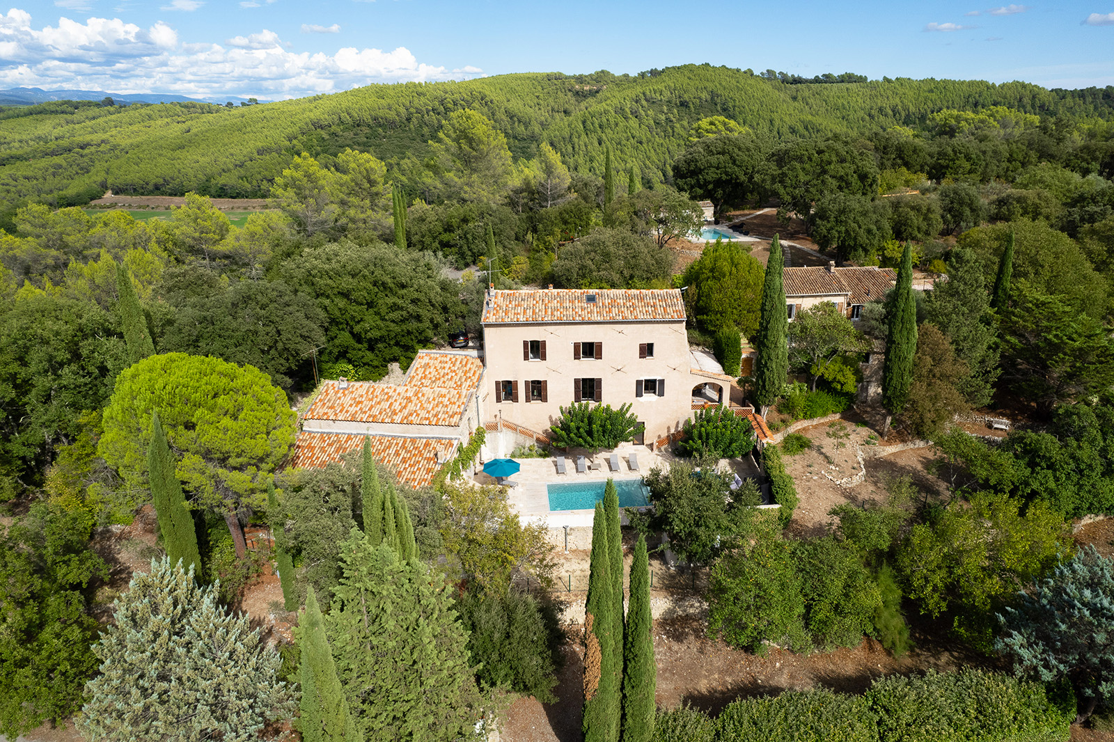 Vrijstaande villa bij het charmante dorp Seillans. Terrein met diverse terrassen. Leuk poolhouse met openhaard.