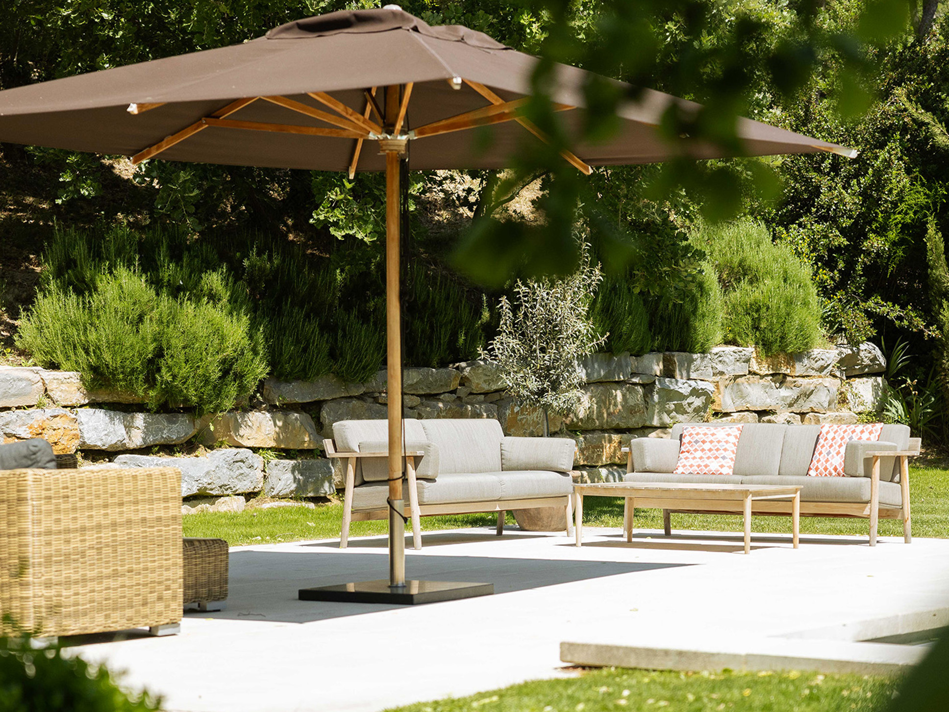 De goed uitgeruste keuken beschikt o.a. over een vaatwasser, 3 ovens, 2 koelkasten, kookplaat, Nespresso-apparaat en een waterkoker. Vanuit de living heeft u een fraai uitzicht op de royale tuin met grasveld en het zwembad. De living en de keuken bieden toegang tot het deels overdekte terras aan de tuinzijde van de villa.