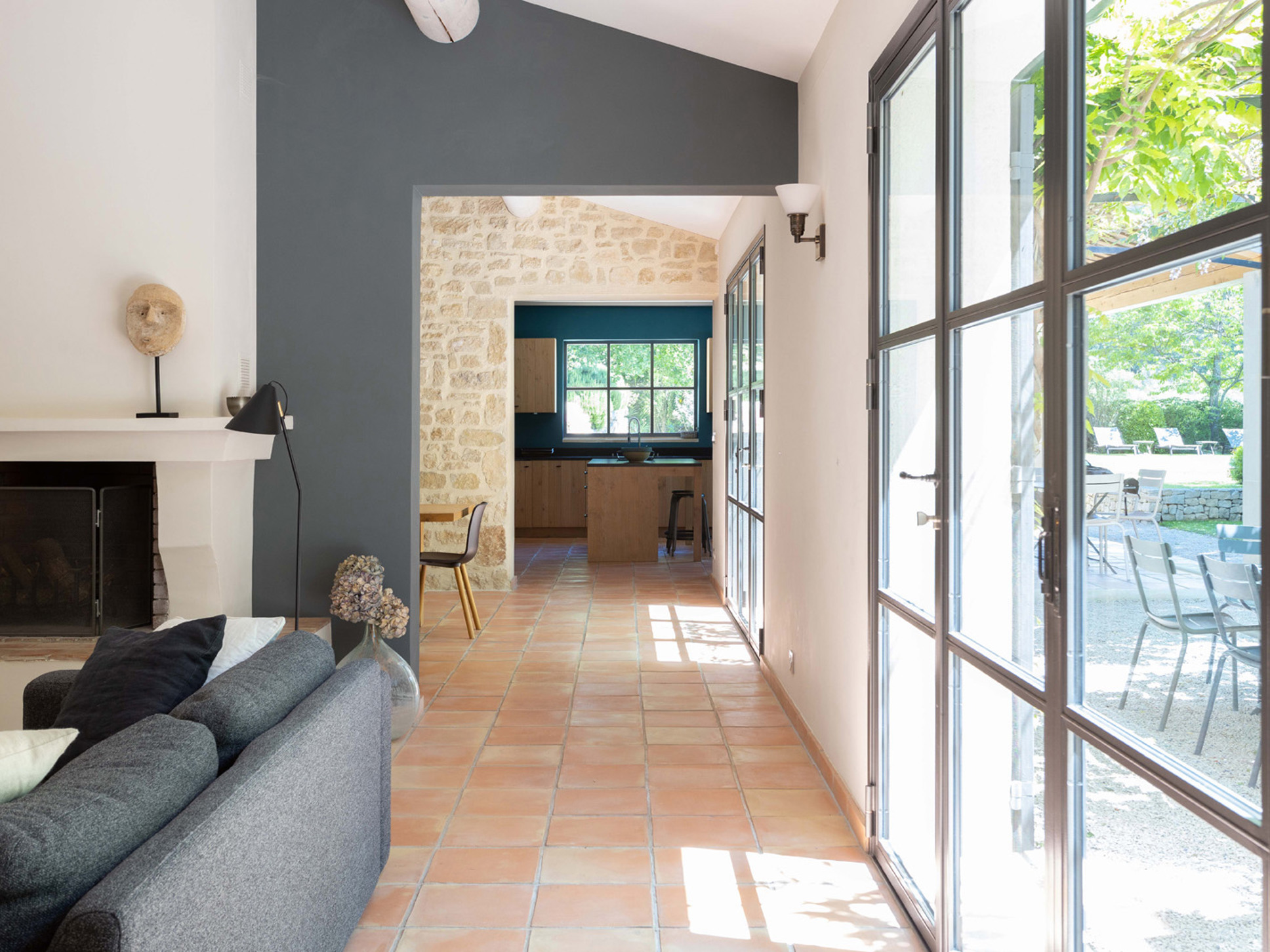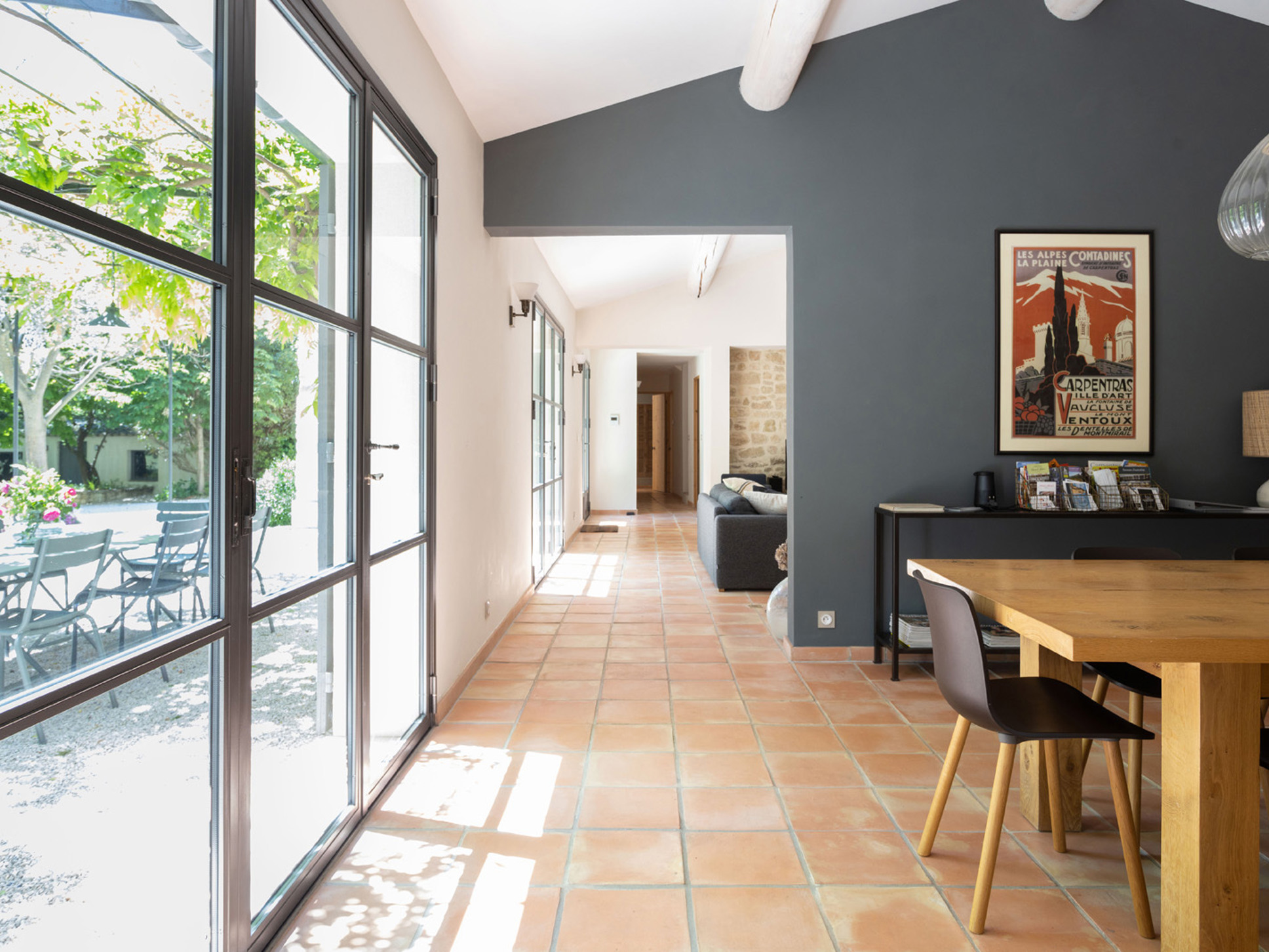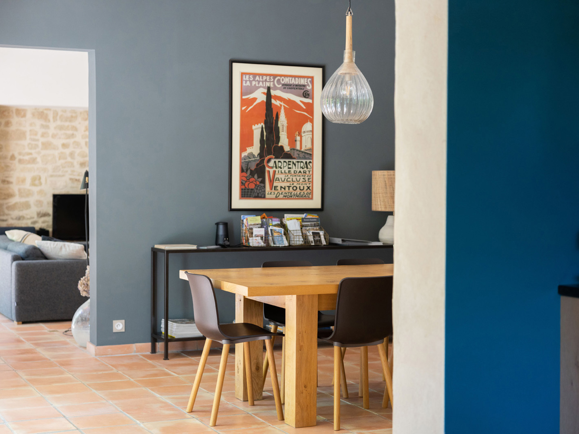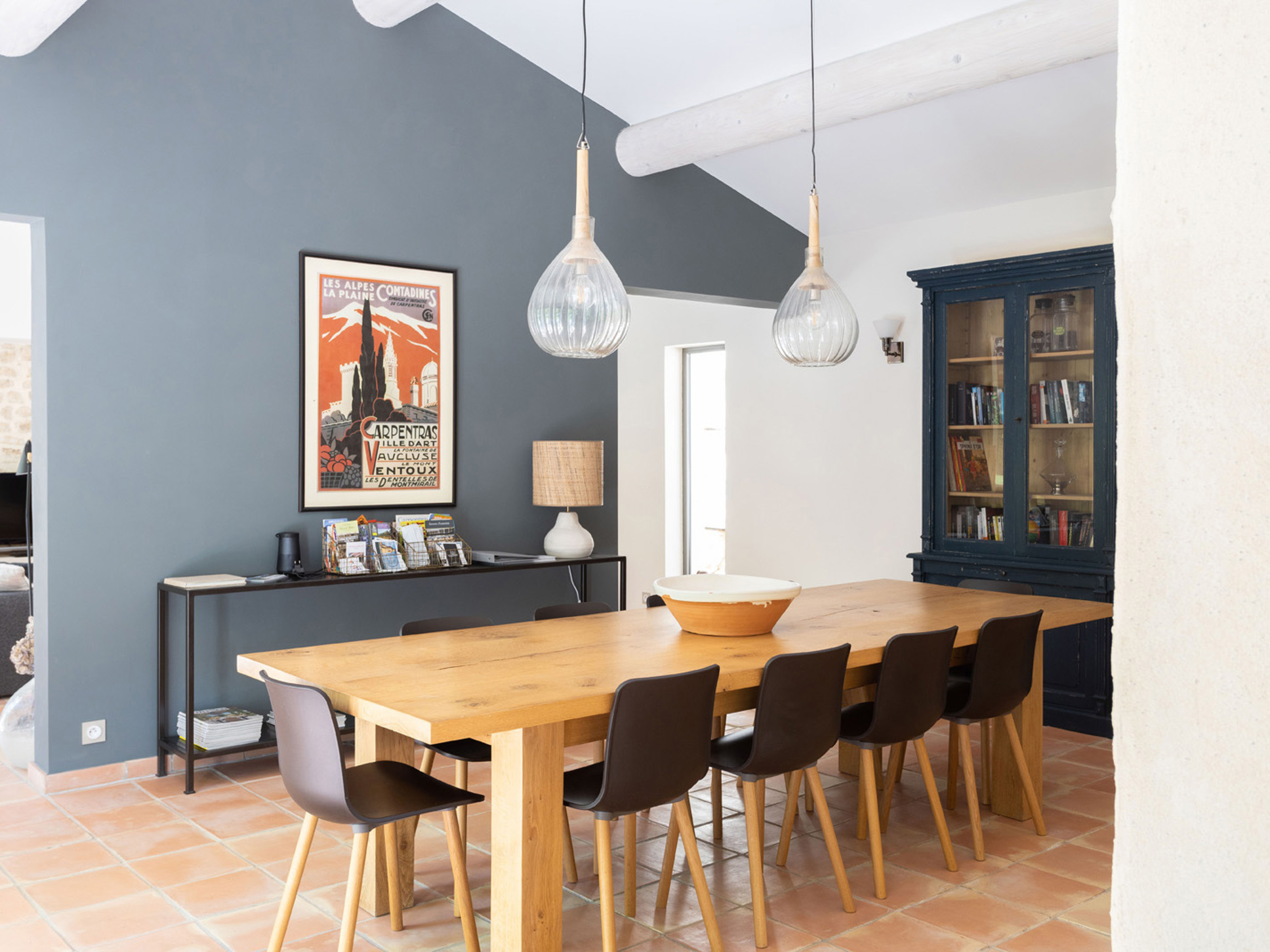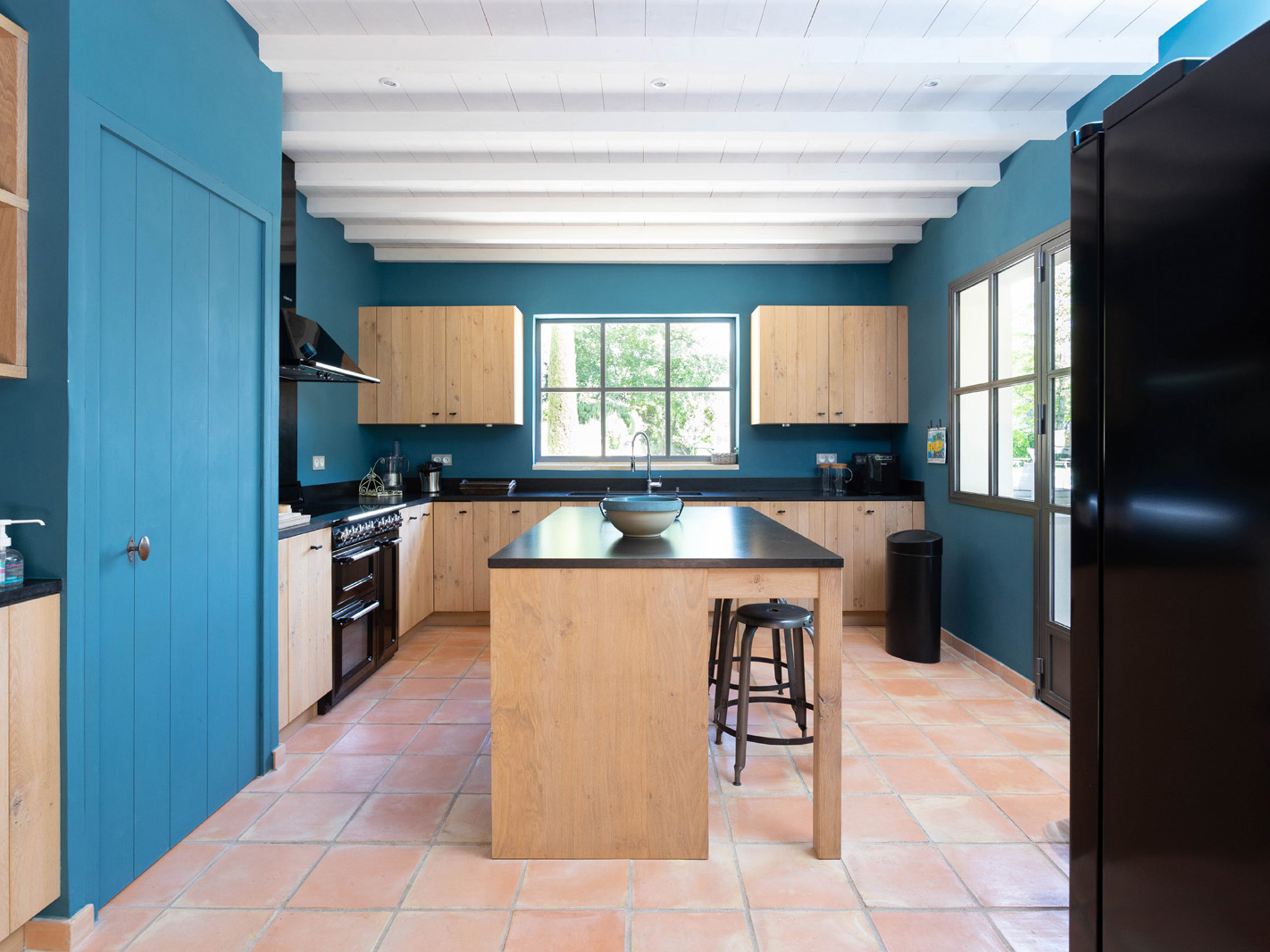 In het verlengde van de eigentijds ingerichte living vindt u de eetkamer, daarachter bevindt zich de nieuwe moderne keuken. Los van alle comfort zijn we erg gecharmeerd van het frisse kleurgebruik in deze villa.