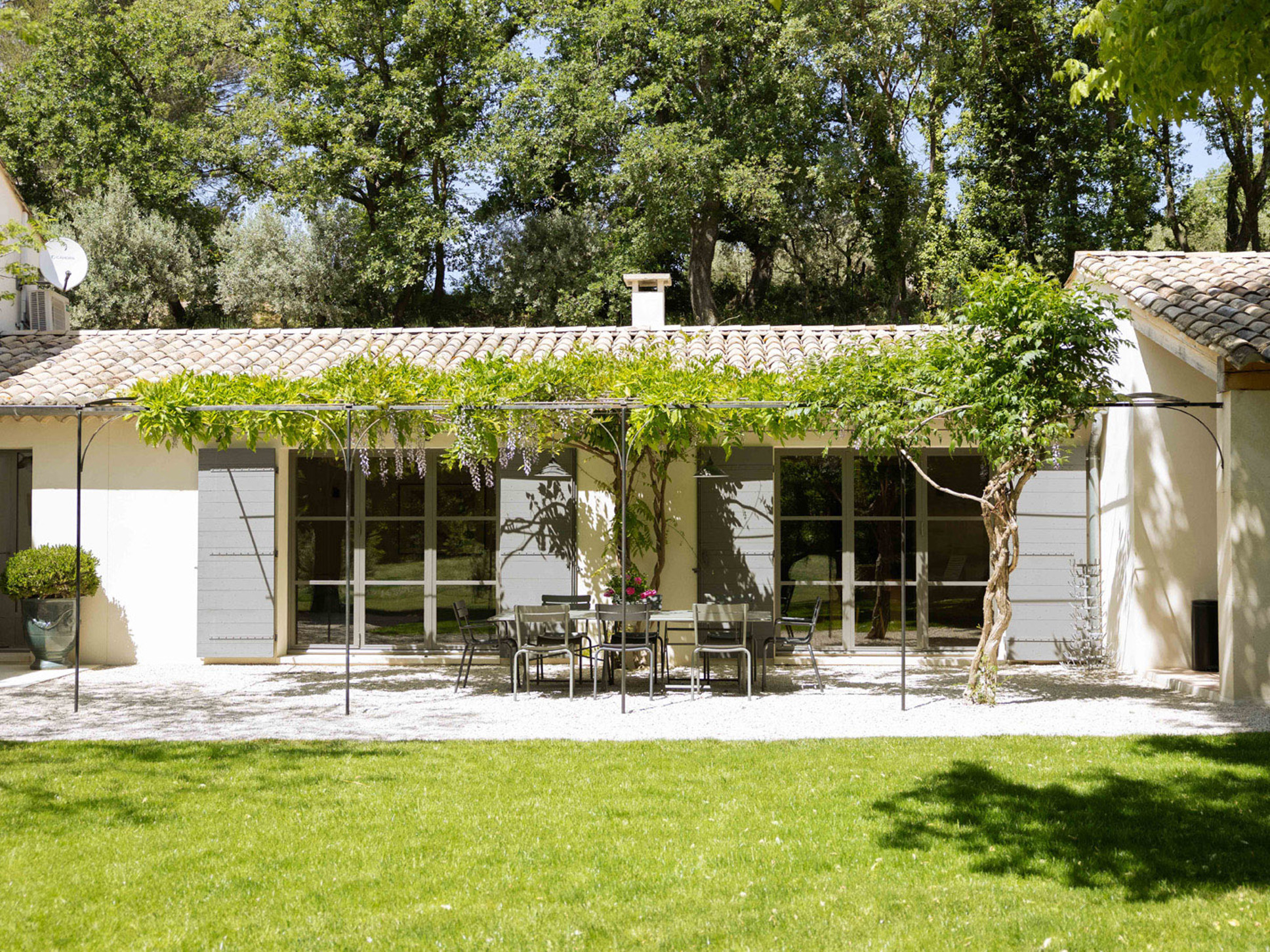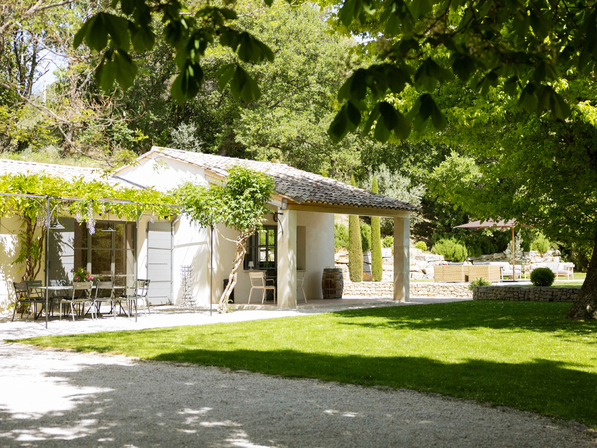 Luxe villa met privé zwembad in Carpentras in de Vaucluse. Gelegen in een rustige en bosrijke omgeving. Luxe moderne inrichting. De grote vlakke tuin - met grote bomen voor de schaduw - maakt de villa ideaal voor gezinnen met kinderen. De villa is geschikt voor 11 personen.