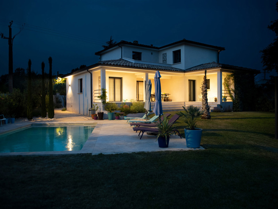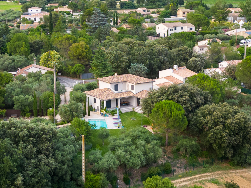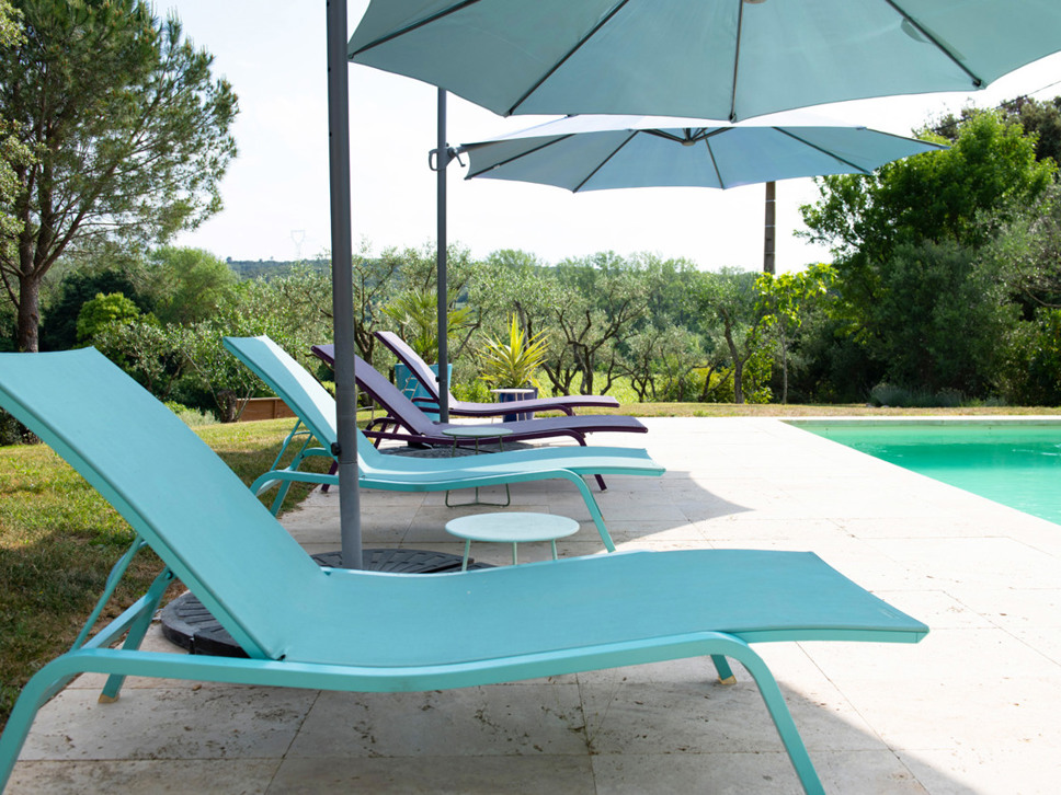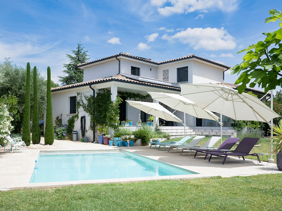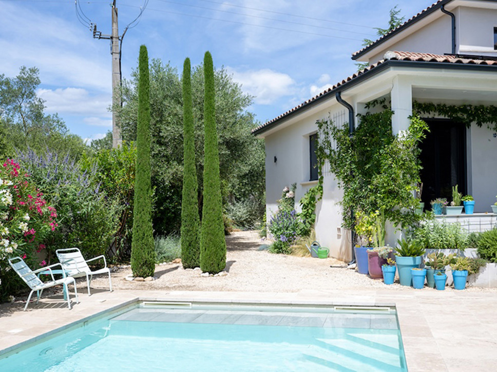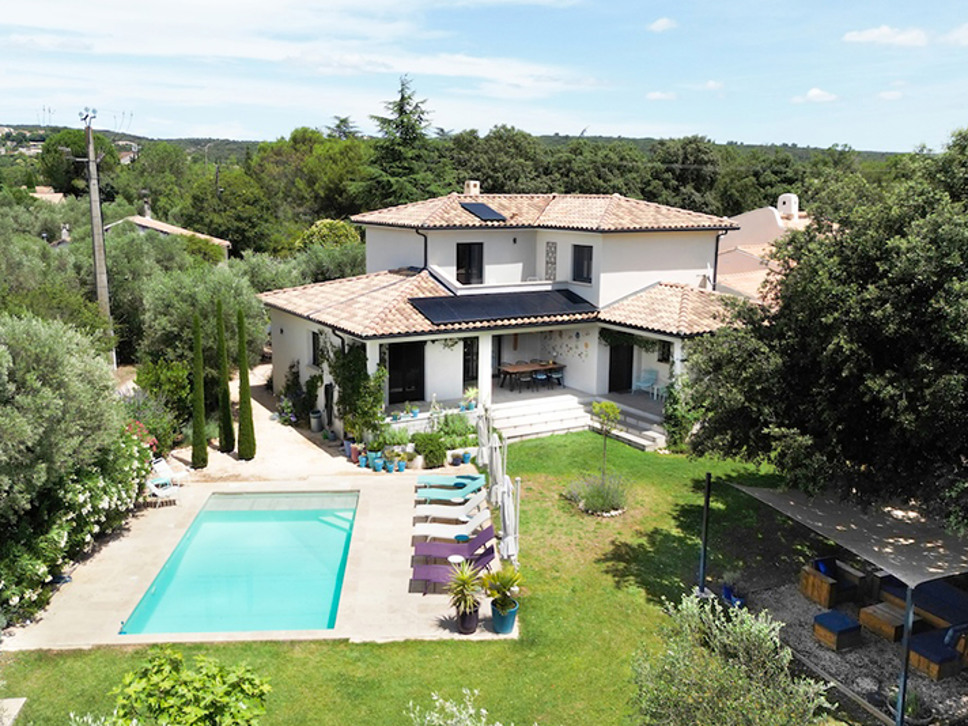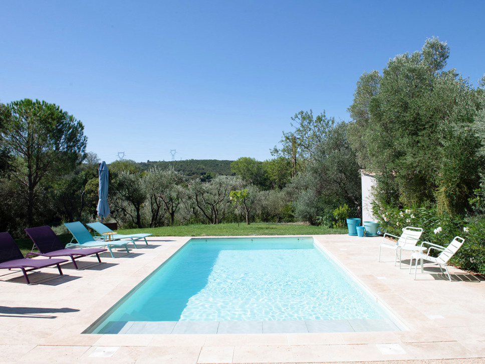 Luxe vakantievilla met privé zwembad te Saint-Maximin nabij Uzès, Provence. Modern scandi-interieur. Airconditioning. Glasvezel internet. Geschikt voor 6 personen.