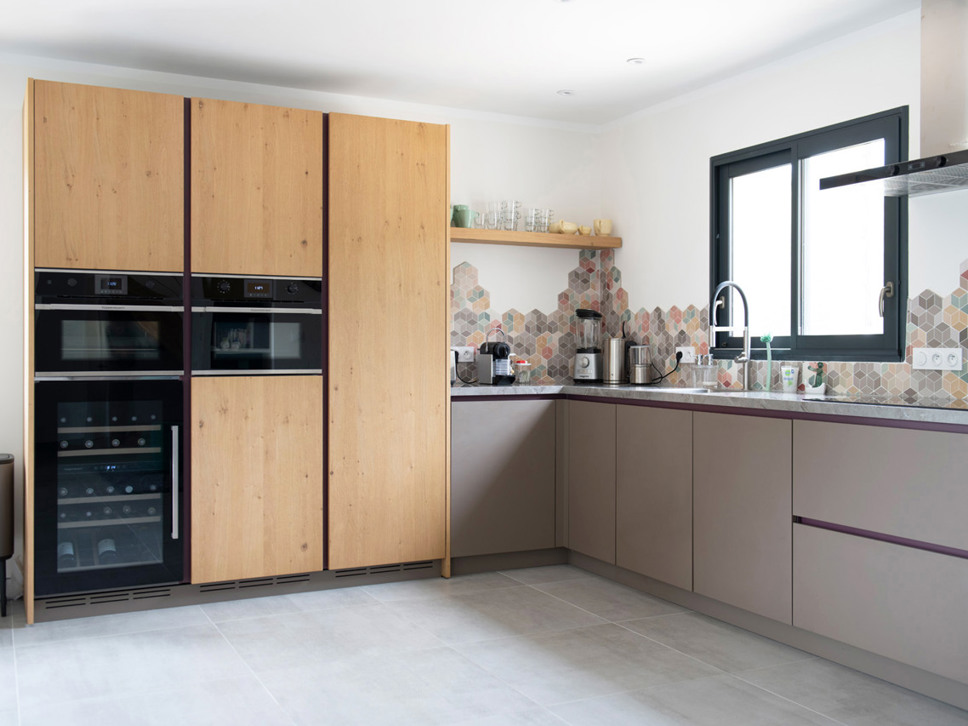 In het verlengde van de living is de moderne keuken. De keuken is compleet ingericht en voorzien van allerlei luxe keukenapparatuur waaronder een wijnklimaatkast.